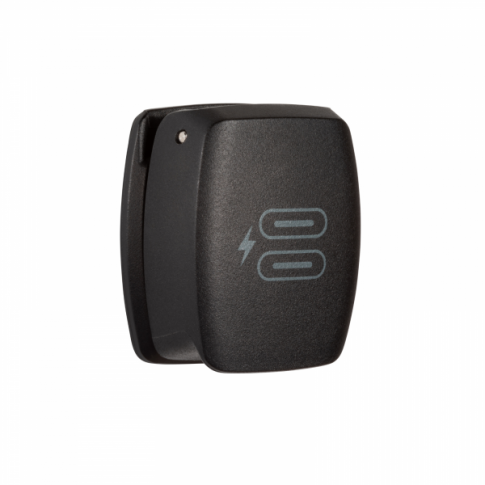 - Spring-Loaded Cover – Locks shut for protection, locks open to secure charging cables