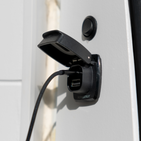 The redesigned form factor matches the sleek aesthetics of the Flip Pro range, ensuring a seamless look across your onboard charging points. The spring-loaded cover locks shut to protect against the elements and locks open when charging to keep cables secure.