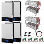 UPS battery back-up system for applications requiring a constant, uninterrupted power supply. Includes 4 x 5000W 48V hybrid inverters with zero-transfer time, 2 x 24kWh 500Ah battery banks and connection cables.